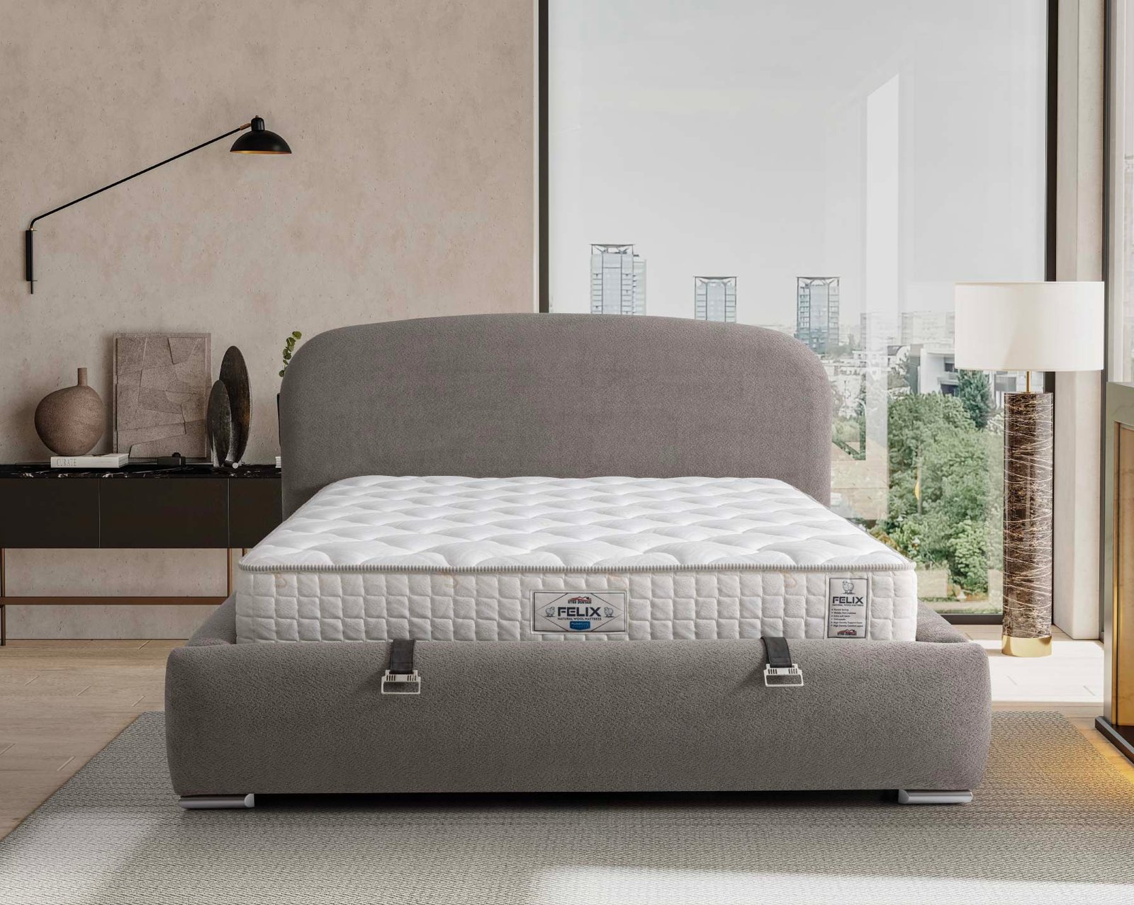 Felix Bed Set adds a fresh touch to your bedroom with its modern lines and functional details. Featuring a supportive mattress, sturdy base, and elegant headboard, it elevates comfort to the next level. Designed to help you leave the day’s fatigue behind, it ensures a deep sleep every night while bringing character to your living space with its stylish design. Experience both elegance and comfort together with the Felix Bed Set.